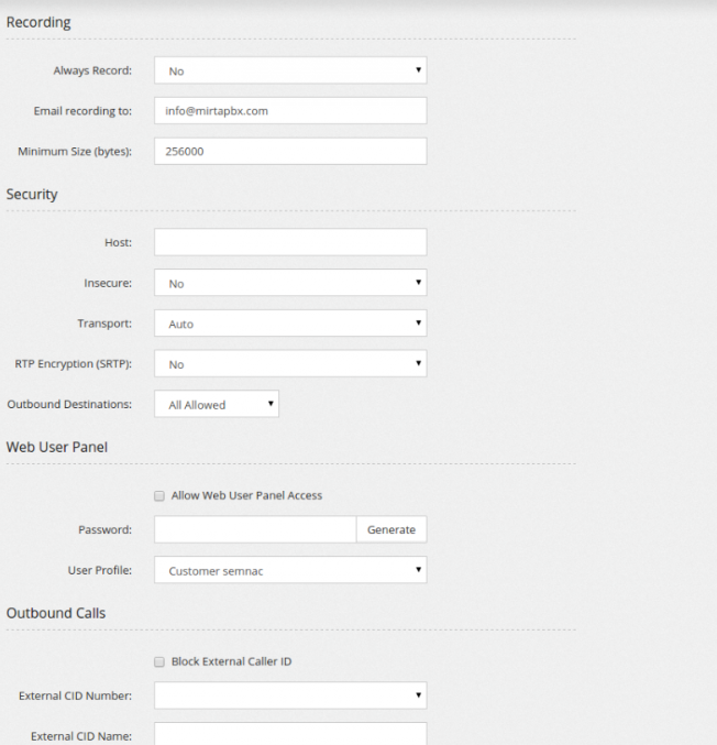 Enabling the web user panel permits to login to the web interface providing the extension username or the specified Web User and the provided web user panel password.